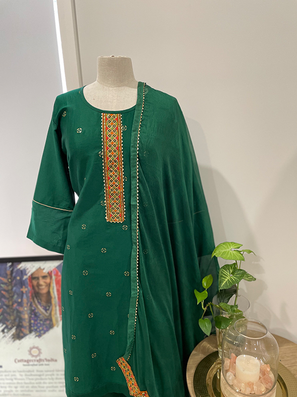 Description. LADIES CHANDARI COTTON SUITS WITH WORK DUPATTA