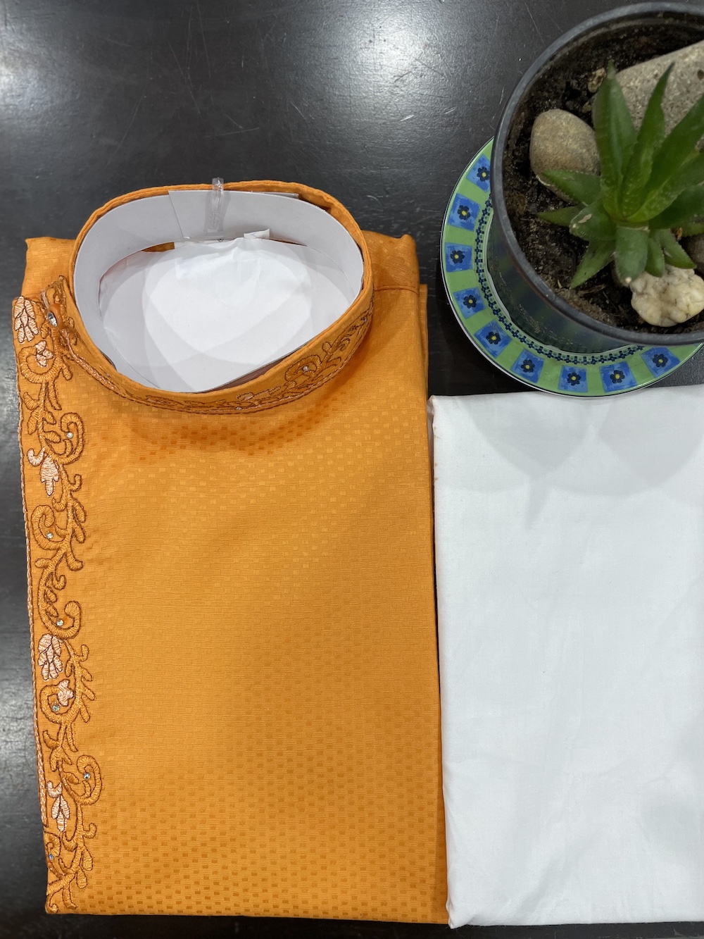 Readymade Cotton Kurta pyjama Angrakha style in Orange colour with white pyjama