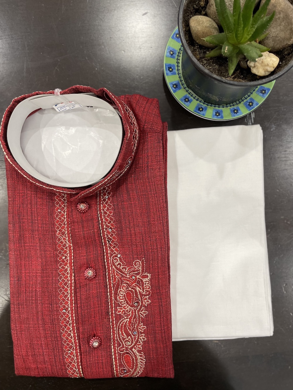 Readymade Cotton Kurta pyjama in Red colour with white pyjama