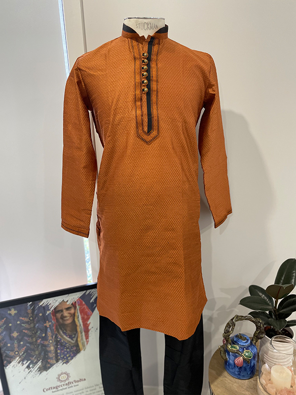 Readymade Kurta and Pajama in Dupion silk Material Color:Brown